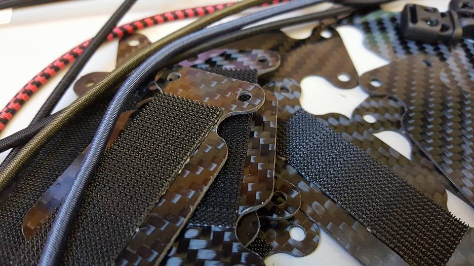 Cut from 1cm finished carbon fiber, 1/8" shock cord, bean type double hole cord lock, velcro back option.